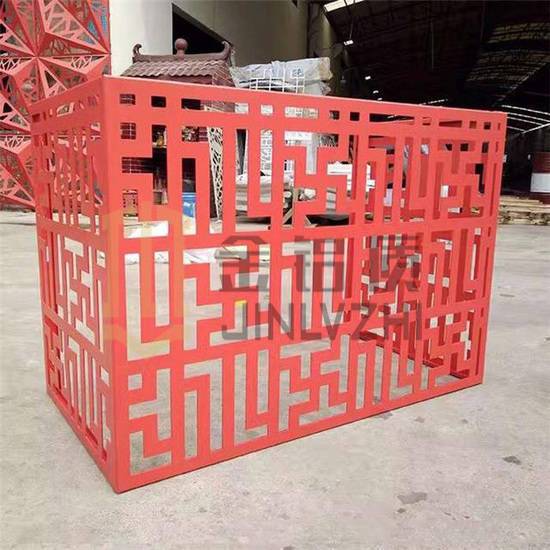 外墻雕花鋁合金空調(diào)罩采用優(yōu)質(zhì)高強(qiáng)度鋁合金板材,其常用厚度為1.5.2.0,2.5,3.0,型號為1100/3003.狀態(tài)為H24。常規(guī)材料尺寸為1220mmX2400mm.其構(gòu)造主要由面板,加強(qiáng)筋和角碼組成。角碼可直接由面板折彎,沖壓成型,也可在面板的折邊上鉚裝角碼成型。加強(qiáng)筋與板面后的電焊螺釘聯(lián)接,使之成為一個牢固的整體,極大增強(qiáng)了外墻雕花鋁合金空調(diào)罩的強(qiáng)度與剛性,保證了長期使用中的平整度及抗震能力。