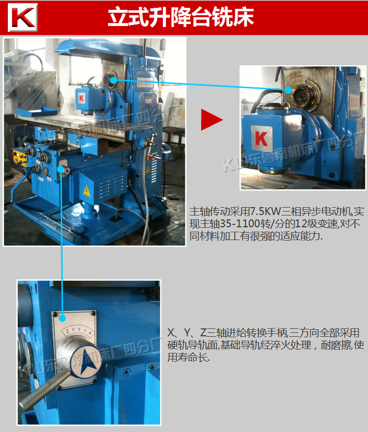 3.山東魯南機(jī)床廠四分廠X5136S立式升降臺(tái)銑床采用臺(tái)灣進(jìn)口直流伺服電機(jī)為進(jìn)給器,以替代傳統(tǒng)的進(jìn)給變速箱,實(shí)現(xiàn)X、Y、Z三方向自動(dòng)進(jìn)給。具有調(diào)速范圍廣、力矩大、噪音低、操作方便、安全可靠等特點(diǎn)是銑床的一種創(chuàng)新結(jié)構(gòu)。